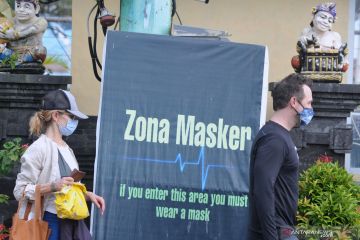 Dua Warga negara asing (WNA) mengenakan masker saat berjalan di kawasan Kuta Utara, Badung, Bali, Rabu (10/3/2021). Pergub Bali Nomor 10 tahun 2021 memperketat sanksi bagi WNA pelanggar protokol kesehatan COVID-19 di mana dalam peraturan sebelumnya sanksi berupa denda administratif sebesar Rp100 ribu menjadi sanksi denda administratif sebesar satu juta rupiah untuk pelanggaran pertama dan sanksi deportasi bagi WNA untuk pelanggaran kedua. ANTARA FOTO/Fikri Yusuf/wsj.
