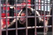 Petugas memberi pisang untuk Siamang atau Kera Hitam (Symphalangus syndactylus) di Balai Konservasi Sumber Daya Alam (BKSDA) resort Aceh Utara, Aceh, Jumat (19/3/2021). BKSDA menerima satwa dilindungi Siamang berjenis kelamin betina usia empat tahun dari TNI Pangkalan Angkatan Laut (Lanal) Lhokseumawe yang secara sukarela menyerahkan untuk direhabilitasi dan dilepasliarkan kembali ke habitatnya. ANTARA FOTO/Rahmad/aww.