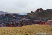 Lahar mengalir dari sebuah gunung berapi di Semenanjung Reykjanes, Islandia, Sabtu (20/3/2021). ANTARA FOTO/Icelandic Coast Guard/Handout via REUTERS/wsj.
