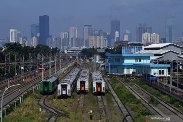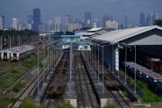 Sejumlah gerbong kereta terparkir di kawasan Depo Cipinang, Jakarta Timur, Minggu (21/3/2021). Kementerian Perhubungan menyatakan Depo Cipinang merupakan depo kereta api terbesar di Indonesia yang memiliki 28 jalur kereta, mampu merawat 144 lokomotif dan 120 gerbong kereta per hari serta dibangun di atas lahan seluas sembilan hektare dengan biaya hampir Rp500 miliar. ANTARA FOTO/Sigid Kurniawan/wsj.