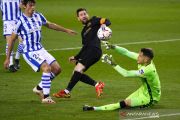 Pemain Barcelona Lionel Messi mencetak gol ke gawang Real Sociedad dalam laga lanjutan Liga Spanyol di Reale Arena, San Sebastian, Spanyol, Minggu (21/3/2021). Barca menang telak 6-1 dalam laga itu. ANTARA FOTO/REUTERS/Vincent West/foc.