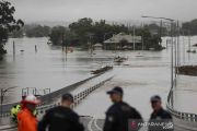 Sebuah mobil yang tenggelam ditinggalkan pemiliknya di lokasi banjir di pinggiran kota Windsor saat banjir yang melanda negara bagian New South Wales meluas ditambah cuaca buruk di Sydney, Australia, Senin (22/3/2021). ANTARA FOTO/REUTERS/Loren Elliott/wsj.