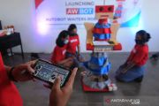 Seorang siswi menggunakan telepon pintarnya untuk menggerakan "autobot waiters robot" di Lembaga Kursus dan Pelatihan (LKP) Autobot School, Klaten, Jawa Tengah, (25/3/2021). Hasil inovasi "autobot waiters robot" atau robot pelayan rumah makan ciptaan siswi SMK Pangudi Luhur Leonardo Klaten tersebut diharapkan dapat membantu pekerjaan manusia dalam mengantar makanan sehingga dapat mengurangi kontak langsung dengan manusia saat pandemi COVID-19. ANTARA FOTO/Aloysius Jarot Nugroho/rwa.