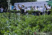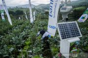 Gubernur Provinsi Jawa Barat Ridwan Kamil menggunakan aplikasi pada gawai untuk bertani di lahan pertanian desa Suntenjaya, Kabupaten Bandung Barat, Jawa Barat, Jumat (26/3/2021). Pemerintah Provinsi Jawa Barat meluncurkan program Petani Milenial yang mengusung konsep pertanian modern dengan teknologi yang dikelola oleh generasi muda sebagai upaya mengurangi angka pengangguran dan menahan laju urbanisasi dengan berbisnis di desa. ANTARA FOTO/Novrian Arbi/aww.