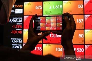 Pekerja memfoto layar pergerakan harga saham di Bursa Efek Indonesia, Jakarta, Rabu (31/3/2021). Indeks Harga Saham Gabungan (IHSG) pada penutupan perdagangan Rabu (31/3) ditutup melemah 85,92 poin atau 1,42 persen ke level 5.985. ANTARA FOTO/Muhammad Adimaja/rwa.