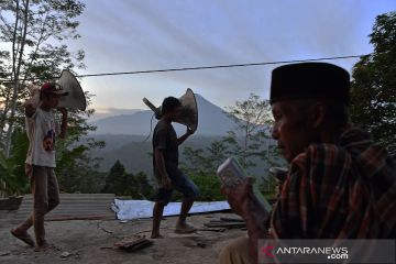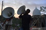 Dua warga korban gempa membawa pengeras suara untuk digunakan shalat tarawih pertama Ramadhan di Desa Kaliuling, Lumajang, Jawa Timur, Senin (12/4/2021). Warga di lokasi tersebut terpaksa melaksanakan shalat tarawih pertama Ramadhan di area terbuka untuk mengantisipasi terjadinya gempa susulan. ANTARA FOTO/Zabur Karuru/rwa.
