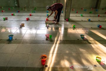 Pengurus Masjid Jami Pekojan menyiapkan bubur India sebagai tradisi sajian berbuka puasa di Kampung Pekojan, Purwodinatan, Semarang, Jawa Tengah, Selasa (13/4/2021). Penyajian bubur untuk warga setempat dan kaum dhuafa tersebut telah menjadi tradisi selama lebih dari seratus tahun dan pertama kali dilakukan oleh pedagang asal India yang menetap di kampung itu. ANTARA FOTO/Aji Styawan/aww.