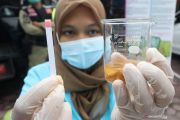 Petugas Badan Pengawasan Obat dan Makanan (BPOM) mengamati tabung reaksi saat uji kelayakan makanan di Pasar Takjil, Kota Kediri, Jawa Timur, Kamis (15/4/2021). Uji sampel makanan tersebut guna mengantisipasi peredaran takjil tidak layak konsumsi seperti mengandung boraks, formalin, pewarna tekstil, dan zat berbahaya lainnya. ANTARA FOTO/Prasetia Fauzani/foc.