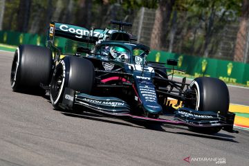 Pembalap Aston Martin Lance Stroll memacu kendaraannya saat sesi latihan Formula One GP Emilia Romagna, di Autodromo Enzo e Dino Ferrari, Imola, Italia - Jumat (16/4/2021). Formula One GP Emilia Romagna akan digelar pada Minggu (18/4/2021). ANTARA FOTO/Reuters-Jennifer Lorenzini/hp.