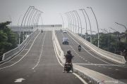 Pengendara motor melintas saat uji coba tahap pertama jalan layang (flyover) Cakung di Jakarta, Senin (19/4/2021). Pemprov DKI Jakarta melakukan uji coba tahap pertama pada jalan layang yang menghubungkan Kecamatan Cakung dengan Kecamatan Duren Sawit itu mulai 19-21 April 2021. ANTARA FOTO/Aprillio Akbar/wsj.