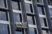 Seorang pekerja menyelesaikan pemasangan dinding kaca bangunan salah satu hotel, di Mataram, NTB, Senin (19/4/2021). Kementerian Ketenagakerjaan mengeluarkan Surat Edaran nomor M/6/HK.04/IV/2021 tentang Pelaksanaan Pemberian Tunjangan Hari Raya (THR) Keagamaan Tahun 2021 bagi pekerja/buruh di perusahaan pada 12 April 2021 yang isinya antara lain tentang denda dan sanksi yang dikenakan bagi perusahaan jika tidak melakukan kewajiban membayar THR kepada karyawannya termasuk perusahaan yang terdampak COVID-19 sehingga tidak mampu memberikan THR 2021 sesuai dengan waktu yang telah ditentukan. ANTARA FOTO/Ahmad Subaidi/hp.