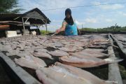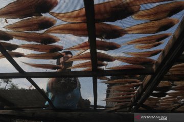 Warga menjemur ikan di Desa Tanjung, Pamekasan, Jawa Timur, Minggu (25/4/2021). Selama bulan Ramadhan tahun ini permintaan ikan kering turun hingga 40 persen dari biasanya 250 kg menjadi 100 kg per minggu dan baru sekali kirim selama bulan puasa. ATARA FOTO/Saiful Bahri/wsj.