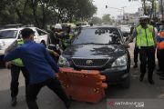 Petugas gabungan menahan mobil yang mencoba kabur dari pemeriksaan di posko penyekatan KM 12 Palembang, Sumsel, Sabtu (8/5/2021). Untuk mengantisipasi keluar masuknya warga dari dan ke Palembang pada masa larangan mudik 6-17 Mei 2021, disiagakan lima posko penyekatan yang disebar di perbatasan Kota Palembang. ANTARA FOTO/Feny Selly/aww.