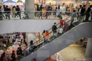 Warga memasuki sebuah pusat perbelanjaan di Jalan Kepatihan, Bandung, Jawa Barat, Minggu (9/5/2021). Jelang Hari Raya Idul Fitri 1442 H, ribuan warga memadati sejumlah pusat perbelanjaan di Kota Bandung untuk berbelanja kebutuhan lebaran. ANTARA FOTO/Raisan Al Farisi/hp.