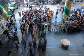 Warga memadati pusat perbelanjaan di Jalan Kepatihan, Bandung, Jawa Barat, Minggu (9/5/2021). Jelang Hari Raya Idul Fitri 1442 H, ribuan warga memadati sejumlah pusat perbelanjaan di Kota Bandung untuk berbelanja kebutuhan lebaran. ANTARA FOTO/Raisan Al Farisi/hp.