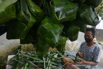 Warga membuat kulit ketupat berbahan daun pandan di Kecamatan Barombong, Kabupaten Gowa, Sulawesi Selatan, Senin (10/5/2021). Menjelang Lebaran, permintaan kulit ketupat berbahan daun pandan yang dijual Rp15.000 per 10 buahnya itu mengalami peningkatan. ANTARA FOTO/Abriawan Abhe/rwa.