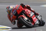 Pebalap dari team Ducati Lenovo Jack Miller beraksi dalam lomba MotoGP Prancis 2021, di Sirkuit Bugatti, Le Mans, Prancis, MInggu (16/5/2021). Setelah melahap 27 putaran, Jack Miller menjadi pemenangnya dengan catatan waktu 47 menit 25,473 detik, disusul pebalap Pramac Ducati, Johann Zarco, yang menyentuh garis finis 3,970 detik lebih lambat, dan posisi ketiga adalah Fabio Quartararo yang mencatatkan waktu 14,468 detik ebih lambat dari Miller. ANTARA FOTO/Reuters-Stephane Mahe/hp.