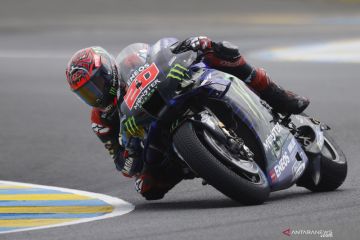 Pebalap Monster Energy Yamaha Fabio Quartararo beraksi dalam lomba MotoGP Prancis 2021, di Sirkuit Bugatti, Le Mans, Prancis, MInggu (16/5/2021). Juara pertama adalah pebalap dari team Ducati Lenovo Jack Miller Miller yang mencatatkan waktu 47 menit 25,473 detik, disusul pebalap Pramac Ducati, Johann Zarco, yang menyentuh garis finis 3,970 detik lebih lambat, dan posisi ketiga adalah Fabio Quartararo yang mencatatkan waktu 14,468 detik ebih lambat dari Miller. ANTARA FOTO/Reuters-Stephane Mahe/hp.