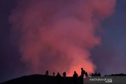 Sejumlah warga mengamati erupsi lava dari gunung berapi Fagradalsfjall di Peninsula Reykjanes, Islandia, Selasa (18/5/2021). ANTARA FOTO/Saul Loeb/Pool via REUTERS/foc.