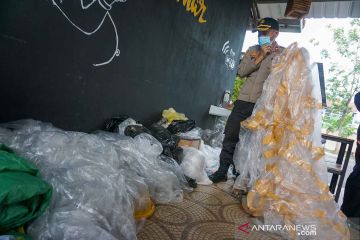 Polisi mengamankan balon udara dan petasan dari warga saat razia di Pekalongan, Jawa Tengah, Kamis 20/5/2021. Polisi Polres Pekalongan Kota merazia petasan dan puluhan balon udara yang diterbangkan liar saat tradisi syawalan di area perumahan dan perkampungan. ANTARA FOTO/Harviyan Perdana Putra/rwa.