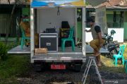 Warga mengurus surat keterangan tidak masuk kerja di mobil pelayanan keliling Pemerintah Desa Dayeuhkolot di Kampung Bojongasih, Kabupaten Bandung, Jawa Barat, Selasa (25/5/2021). Pemerintah Desa Dayeuhkolot berinisiatif untuk memindahkan pelayanan publik dengan menggunakan mobil pelayanan keliling akibat kantor desa yang terendam banjir. ANTARA FOTO/Raisan Al Farisi/foc.