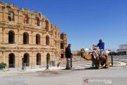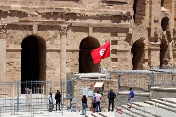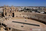 Wisatawan berkunjung ke amfiteater El Jem, Situs Warisan Dunia UNESCO yang dibangun pada akhir abad ke-3 di El Jem di tengah mewabahnya penyakit coronavirus (COVID-19) di Tunisia, Kamis (20/5/2021). Foto diambil 20 Mei 2021. ANTARA FOTO/REUTERS/Jihed Abidellaoui/wsj.