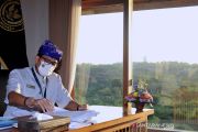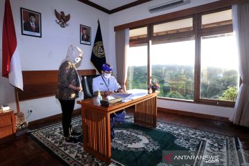 Menteri Pariwisata dan Ekonomi Kreatif (Menparekraf) Sandiaga Salahuddin Uno bekerja di ruangannya di Politeknik Pariwisata Bali, Nusa Dua, Badung, Bali, Kamis (27/5/2021). Menparekraf Sandiaga Uno bersama jajarannya melakukan 'Work from Bali' atau bekerja dari Bali serta mendukung program 'Work from Bali' yang dicanangkan Kementerian Koordinator Kemaritiman dan Investasi agar dapat direalisasikan sebagai salah satu upaya untuk membantu pemulihan sektor pariwisata dan ekonomi kreatif Bali yang terdampak pandemi COVID-19. ANTARA FOTO/Fikri Yusuf/aww.
