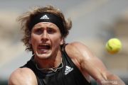 Petenis Jerman Alexander Zverev mengembalikan bola ke arah lawannya petenis Rusia Roman Safiullin dalam laga putaran kedua Turnamen Tenis French Open, di Roland Garros, Paris, Prancis, Rabu (2/6/2021). Zverev melaju keputaran ketiga setelah berhasil mengalahkan Safiullin 7(7)-6(1), 6-3, dan 7(7)-6(1) . ANTARA FOTO/Reuters-Gonzalo Fuentes/hp.