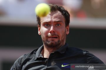 Petenis Rusia Roman Safiullin mengembalikan bola ke arah lawannya petenis Jerman Alexander Zverev dalam laga putaran kedua Turnamen Tenis French Open, di Roland Garros, Paris, Prancis, Rabu (2/6/2021). Zverev melaju keputaran ketiga setelah berhasil mengalahkan Safiullin 7(7)-6(1), 6-3, dan 7(7)-6(1) . ANTARA FOTO/Reuters-Gonzalo Fuentes/hp.
