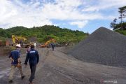 Tim dari Komisi Pemberantasan Korupsi (KPK) dan kementerian terkait meninjau lokasi usaha tambang galian C di Kota Sorong, Papua Barat, Senin (7/6/2021). KPK bersama kementerian terkait melakukan kunjungan ke Kota Sorong untuk melakukan pengawasan secara langsung industri galian C yang diduga menyebabkan kebocoran keuangan daerah. ANTARA FOTO/Olha Mulalinda/foc.