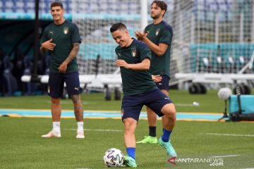 Pemain Italia berlatih jelang pertandingan perdana Piala Eropa 2020 di Stadion Olimpico, Roma, Jumat (11/6/2021). Italia akan mengawali laga perdana melawan Turki. ANTARA FOTO/REUTERS/Alberto Lingria/pras.