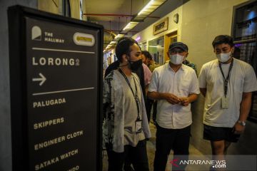 Menteri Koperasi dan UKM Teten Masduki meninjau toko UKM kreatif di Hallway Space Kosambi, Bandung, Jawa Barat, Jumat (11/6/2021). Dalam kunjungan kerjanya di Bandung, Teten Masduki berkesempatan untuk menjadi narasumber "Talk Show" bersama Putri Tanjung dan menyerap aspirasi dari pelaku usaha kreatif di Kota Bandung. ANTARA FOTO/Raisan Al Farisi/pras.