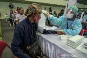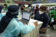 Petugas medis melakukan pengecekan kesehatan abdi dalem Kraton Yogyakarta saat vaksinasi tahap pertama di Grab Vaccine Centre, Sleman, DI Yogyakarta, Rabu (16/6/2021). Pemerintah Daerah Istimewa Yogyakarta bekerja sama dengan Grab Indonesia menggelar vaksinasi yang diikuti mitra pengemudi Grab, lansia, penyandang disabilitas dan abdi dalem Kraton Yogyakarta tersebut berlangsung hingga 17 Juni 2021. ANTARA FOTO/Hendra Nurdiyansyah/aww.