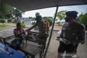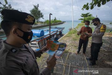 Petugas Bhayangkara Pembina Keamanan dan Ketertiban Masyarakat (Bhabinkamtibmas) menyampaikan sosialisasi protokol kesehatan pencegahan COVID-19 kepada warga di Pulau Sabira, Kabupaten Kepulauan Seribu, DKI Jakarta, Kamis (17/6/2021). Sosialisasi ini semakin digencarkan setelah Pemerintah Provinsi DKI Jakarta memperpanjang masa Pemberlakuan Pembatasan Kegiatan Masyarakat (PPKM) skala mikro hingga 28 Juni 2021. ANTARA FOTO/Aditya Pradana Putra/pras.