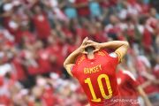 Pemain Wales Aaron Ramsey memegang kepalanya usai kalah dari Denmark pada pertandingan babak 16 Besar Kejuaraan Piala Eropa 2020 di Johan Cruijff ArenA, Amsterdam, Belanda, Sabtu (26/6/2021). Lumat Wales 4-0, Denmark melenggang ke babak perempat final Euro 2020. ANTARA FOTO/Piroschka Van De Wouw/Pool via REUTERS/wsj.