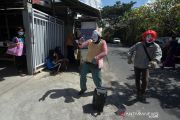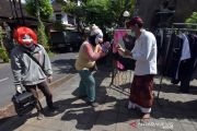 Dua warga perantauan menggunakan topeng badut saat mengamen di Denpasar, Bali, Rabu (30/6/2021). Satpol PP Kota Denpasar menyebut jumlah pengamen di ibu kota Provinsi Bali itu mengalami peningkatan selama pandemi COVID-19 yang sebagai besar merupakan buruh bangunan maupun buruh usaha rumahan yang kehilangan pekerjaan akibat terdampak COVID-19. ANTARA FOTO/Nyoman Hendra Wibowo/pras.