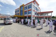 Sejumlah tenaga kesehatan memberikan hormat kepada mendiang bidan Ilah Kurnia di RSUD Indramayu, Jawa Barat, Jumat (2/7/2021). Penghormatan tersebut diberikan kepada bidan Ilah Kurnia yang meninggal dunia akibat COVID-19. ANTARA FOTO/Dedhez Anggara/pras.