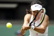 Petenis Inggris berusia 18 tahun Emma Raducanu mengembalikan bola ke lawannya petenis Rumania Sorana Cirstea pada putaran ketiga tunggal putri kejuaraan tenis Wimbledon di All England Lawn Tennis and Croquet Club, London, Inggris, Sabtu (3/7/2021). Emma menang dengan skor 6-3, 7-5 dan melaju ke babak 16 besar. ANTARA FOTO/REUTERS/Peter Nicholls/foc.