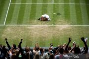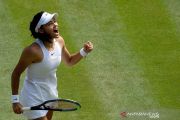 Petenis Inggris berusia 18 tahun Emma Raducanu merayakan kemenangannya atas petenis Rumania Sorana Cirstea pada putaran ketiga tunggal putri kejuaraan tenis Wimbledon di All England Lawn Tennis and Croquet Club, London, Inggris, Sabtu (3/7/2021). Emma menang dengan skor 6-3, 7-5 dan melaju ke babak 16 besar. ANTARA FOTO/Pool via REUTERS/Jonathan Nackstrand/foc.