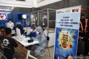Calon penumpang kereta jarak jauh mengantre untuk mendapatkan vaksin COVID-19 di Stasiun Balapan Solo, Jawa Tengah, Selasa (6/7/2021). Selain Stasiun Balapan Solo, PT Kereta Api Indonesia menyediakan program layanan vaksinasi di stasiun Gambir, Pasar Senen, Cirebon, Semarang Tawang, Yogyakarta, dan Jember untuk membantu melengkapi persyaratan calon pelanggan kereta api jarak jauh di masa PPKM darurat. ANTARA FOTO/Maulana Surya/foc.