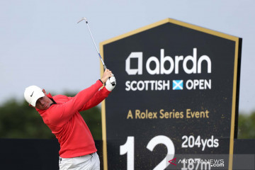 Pegolf Rory McIlroy beraksi pada babak kedua turnamen golf Skotlandia terbuka di The Renaissance Club, North Berwick, Skotlandia (9/7/2021). ANTARA FOTO/REUTERS/Russell Cheyne/aww.