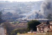 Pabrik-pabrik terbakar saat protes terus berlanjut menyusul hukuman penjara bagi mantan Presiden Afrika Selatan Jacob Zuma di Pietermaritzburg, Afrika Selatan, Senin (12/7/2021). ANTARA FOTO/REUTERS/Rogan Ward/wsj.