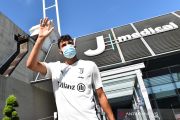 Pemain Juventus Gianluca Frabotta tiba di Juventus Training Center, Turin, untuk latihan perdana, Kamis (14/7/2021). ANTARA FOTO/REUTERS/Massimo Pinca/pras.