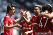 Pemain Manchester United Facundo Pellistri (kiri) merayakan gol ke gawang Derby County dalam laga persahabatan pramusim di Pride Park, Derby, Inggris, Minggu (18/7/2021). MU menang 2-1 dalam laga tersebut. ANTARA FOTO/Reuters/Action Images via Reuters/Craig Brough/foc.