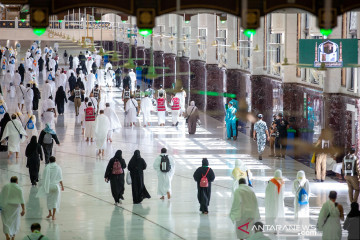 Umat muslim melakukan ibadah umroh jelang puncak haji di Masjidil Haram, Mekah, Arab Saudi, Sabtu (17/7/2021). ANTARA FOTO/Saudi Ministry of Media/Handout via REUTERS/pras.