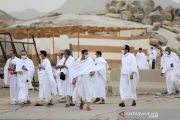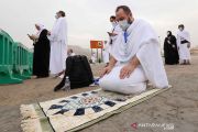 Peziarah Muslim berkumpul di dataran Arafat selama ziarah haji tahunan di luar kota suci Mekah, Arab Saudi, Senin (19/7/2021). ANTARA FOTO/REUTERS/Ahmed Yosri/rwa.