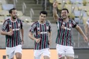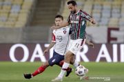 Pesepak bola Fluminense Fred (kanan) melakukan selebrasi dengan rekan-rekannya setelah berhasil mencetak gol ke gawang Cerro Porteno dalam laga leg kedua babak 16 besar Copa Libertadores, di Stadion Maracana, Rio de Janeiro, Brazil, Selasa (3/8/2021). Fluminense melaju ke babak berikutnya setelah mengalahkan Cerro Porteno 1-0 dalam pertadningan ini sehingga unggul agregat 3-0. ANTARA FOTO/Pool via Reuters- Antonio Lacerda/hp.
