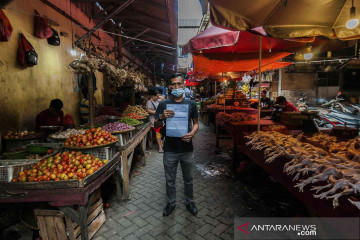Foto kombo sejumlah pedagang menunjukkan sertifikat vaksin COVID-19 miliknya di pasar tradisional Rangkasbitung, Lebak, Banten, Jumat (6/8/2021). Pemerintah Kabupaten Lebak menerapkan syarat wajib kepada para pedagang di pasar tradisional untuk memiliki sertifikat vaksin COVID-19 bagi yang mau berjualan. ANTARA FOTO/Muhammad Bagus Khoirunas/rwa.