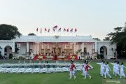Pasukan Pengibar Bendera Pusaka berbaris untuk menurunkan bendera Merah Putih saat upacara Penurunan Bendera Merah Putih dalam rangka HUT ke-76 Kemerdekaan RI di Istana Merdeka, Jakarta, Selasa (17/8/2021). ANTARA FOTO/Biro Pers Setpres/Kris/sgd/hp.