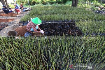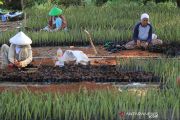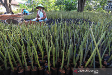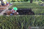 Sejumlah warga menanam bibit mangrove di desa Pabean ilir, Pasekan, Indramayu, Jawa Barat, Kamis (19/8/2021). Warga di daerah tersebut membudidayakan bibit mangrove untuk dijual ke berbagai daerah dengan harga Rp700 per bibit. ANTARA FOTO/Dedhez Anggara/aww.